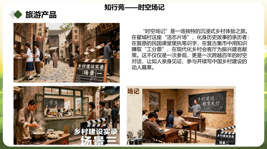 参与翟城村项目规划,既是一次对乡村资源的深度挖掘,更是一场与百年乡建精神的对话。我们锚定“晏阳初平民教育”与“村民自治第一村”核心IP,以“一核两轴七区”串联全域空间,既通过场景复原、数字互动让文化可感可触,又构建起“研学+康养+文创+旅居”的多元业态,更精准对接不同客群需求设计差异化体验。全程深刻体会到,乡村规划不是简单的蓝图绘制,而是要在保护乡土肌理、传承文化根脉的基础上,兼顾民生实效与可持续发展,让每一处设计都扎根大地、惠及村民,让古村在守正创新中焕发持久活力。