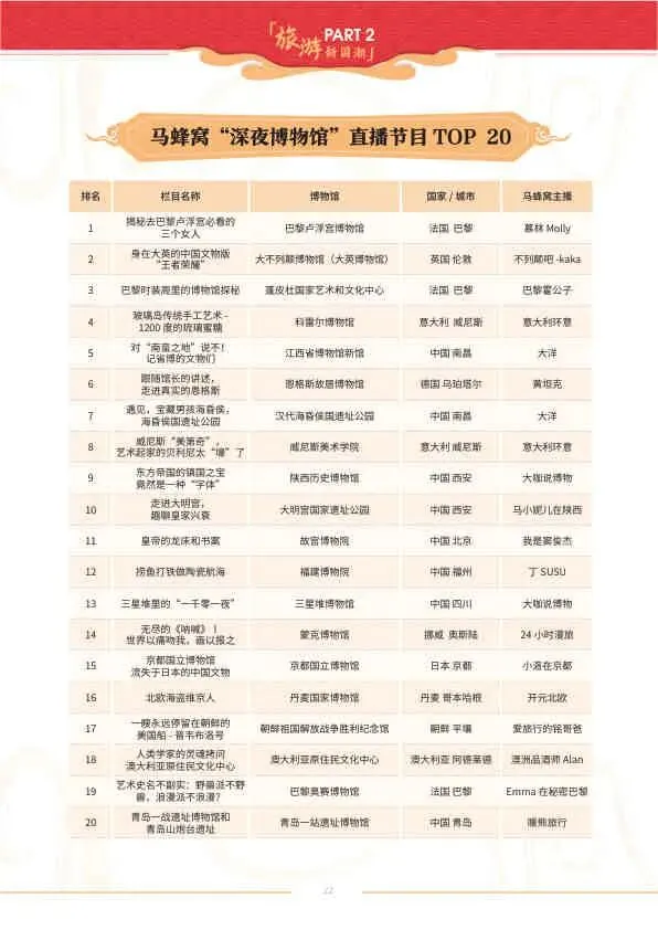 - 平台赋能: 马蜂窝通过“深夜博物馆”直播、达人共创等方式,成功将博物馆打造成线上线下的文化潮流地标。