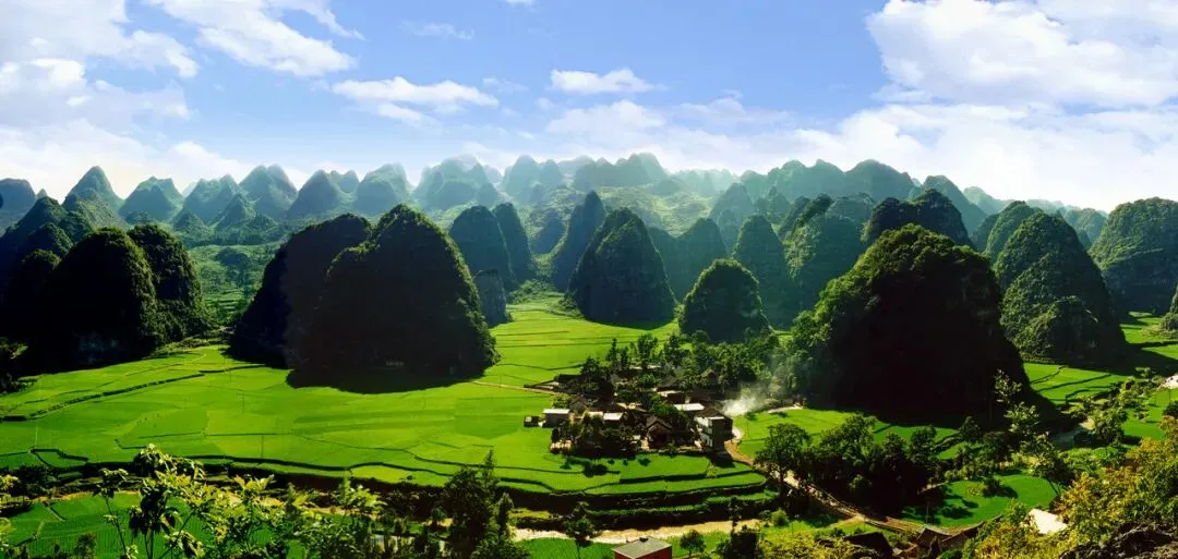 简介:中国最美锥状峰林,田园与峰丛相映成画。
