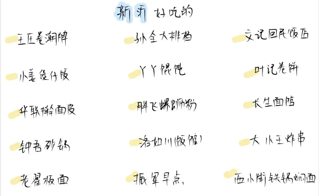 😋好吃的:王庄卷潮牌、孙全大排档、丫丫馄饨、长生面馆、钟吾砂锅、振军早点、大小王炸串、五姐米线、沙家牛肉汤、叶记卷饼、刘记麻辣烫、新沂羊油辣饼