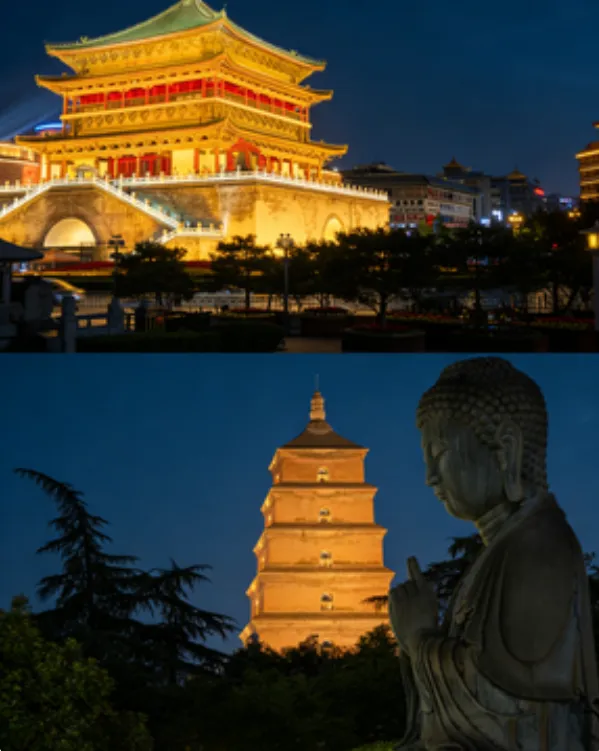 Day1:抵达西安→专属商务车接送→入住钟鼓楼附近四钻酒店→自由逛钟鼓楼广场、书院门
