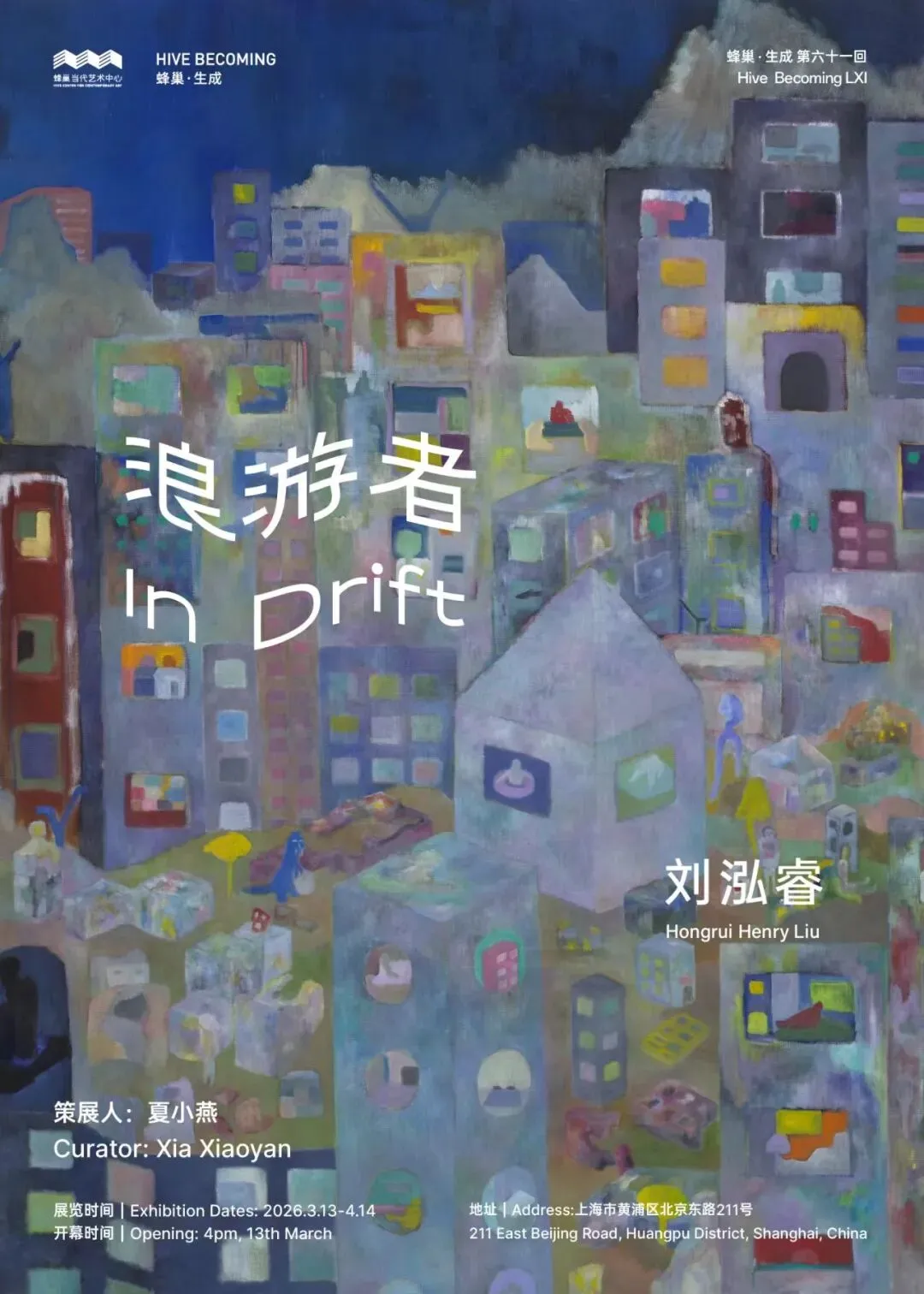 “浪游者”是艺术家刘泓睿的首次中国个展,汇集了艺术家最新的十余件绘画作品。刘泓睿工作、生活于伦敦,作品以碎片化的都市经验为出发点,通过叠加、分化与增殖的空间结构,将建筑、山水与身体元素交织为一种心理化的场域,通过松弛而具生成性的绘画语言,在跨文化流动与存在主义视域中重构个体、空间与记忆之间的关联。