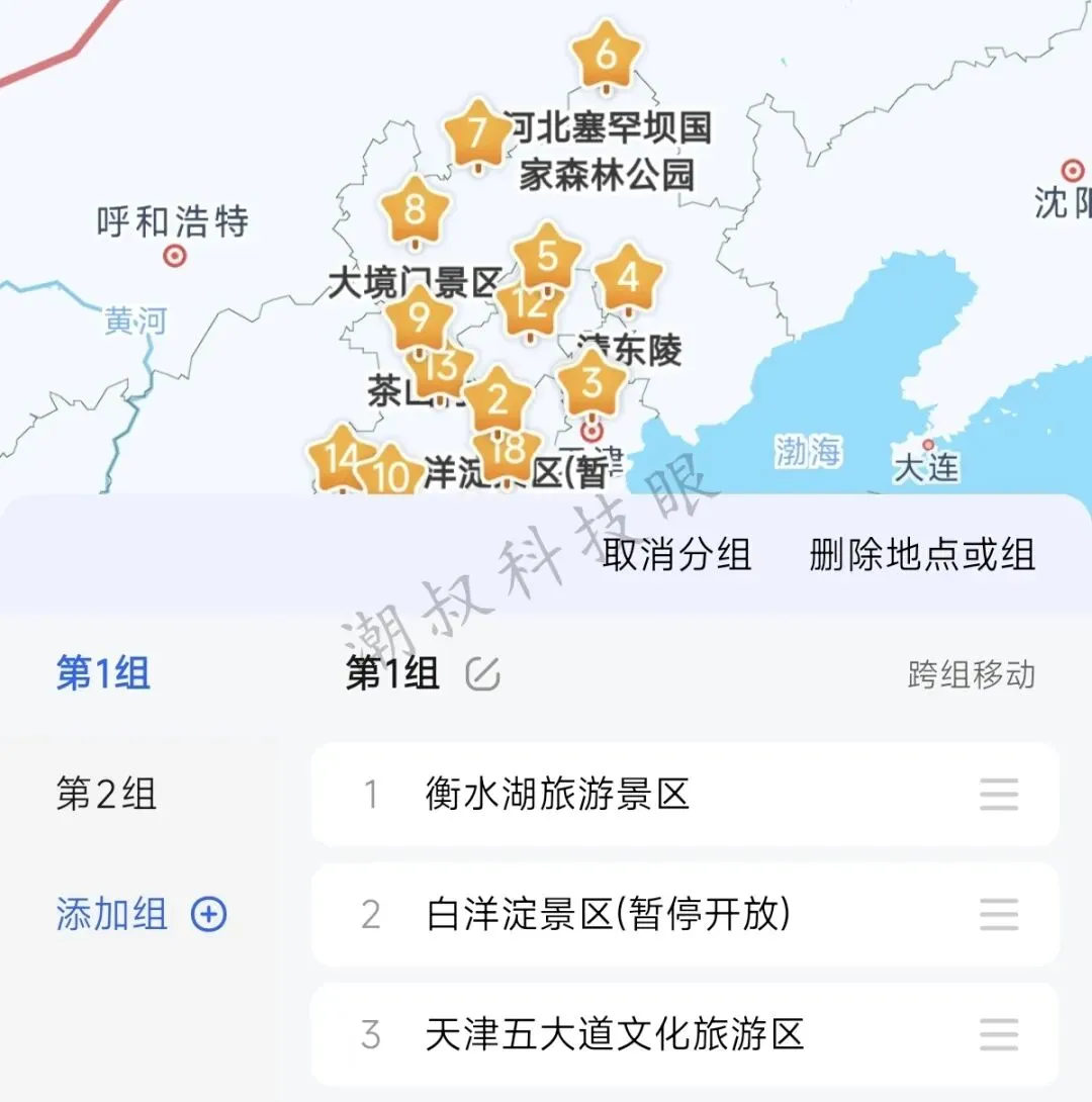 每次外出旅行,或想做旅游plog攻略,都要涉及旅游路线图,看着别人制作的规划图专业又好看,很多新手小白羡慕又纠结,想制作路书太难了,因为好多路书制作APP,要么是收费的,要么各种弹窗广告多,折腾半天也做不出一个满意的行程路线。 其实,根本不用东奔西找,咱们常用的高德地图就可以哦,借助高德的收藏功能,就能免费、轻松搞定专属旅行路书,不仅可以规划路线,同时支持样式修改、分享保存等等,不管是自驾、自由行,还是做旅行攻略都超实用! 一、准备工作 首先,你的手机要装一个高德地图APP,好吧有点啰嗦了,咱们正式开始! 既然是线路规划图,核心就是明确旅行地点。例如,以本次教程为例,潮叔规划了一个“京津冀自驾游路线图”,这其中就包括如下景点:衡水湖、白洋淀、清东陵、塞罕坝、大境门等等,提前在地图上选出来。 二、收藏景点 1、打开高德地图,在搜索框输入第一个要去的旅行地点,咱们以「衡水湖」景区为例,搜索并找到它。