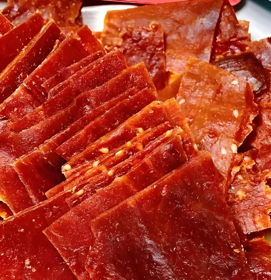 第四美食:靖江猪肉脯虽然靖江是泰州下面的县级市,但这是泰州美食的名片。正宗的靖江猪肉脯是用炭火慢烤的,肉质紧实,咸甜适口,越嚼越香。推荐去“双鱼”或者“美珍香”的专卖店,买现烤的。别买那种真空包装的,味道差远了。50块钱能买一大包,送人自用两相宜。