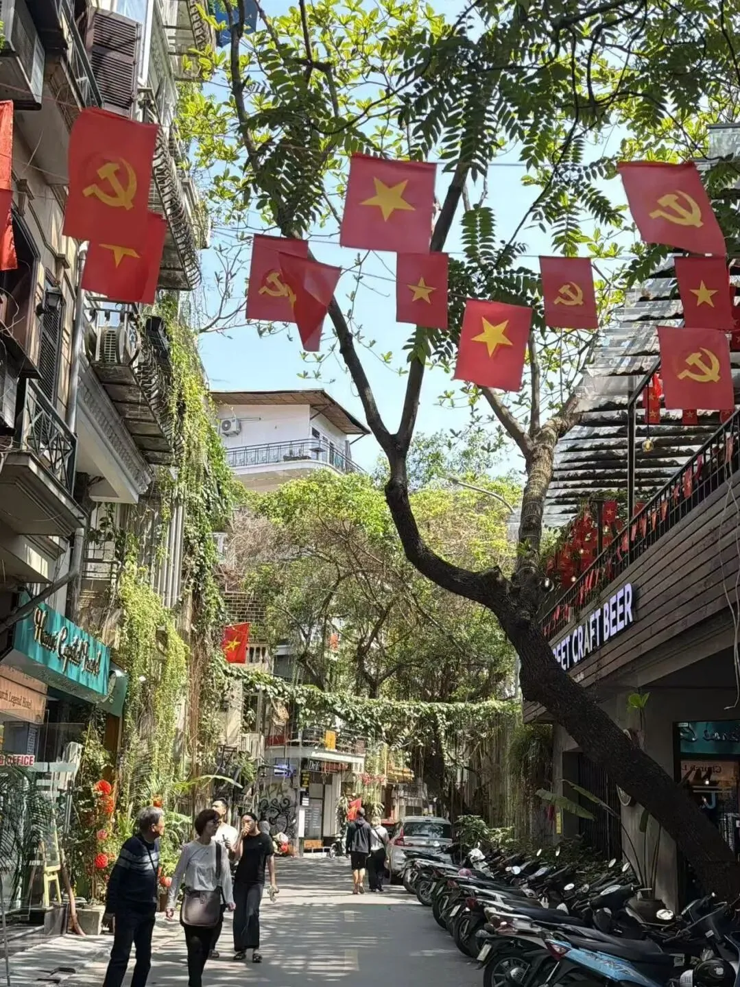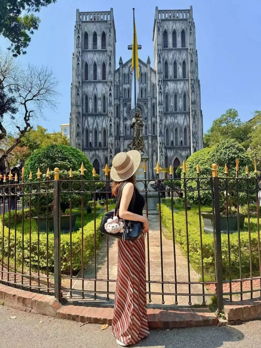 吃完直接开启老城city walk。穿过热闹的36行古街,走到河内大教堂,复古法式建筑在阳光下随手拍都出片。