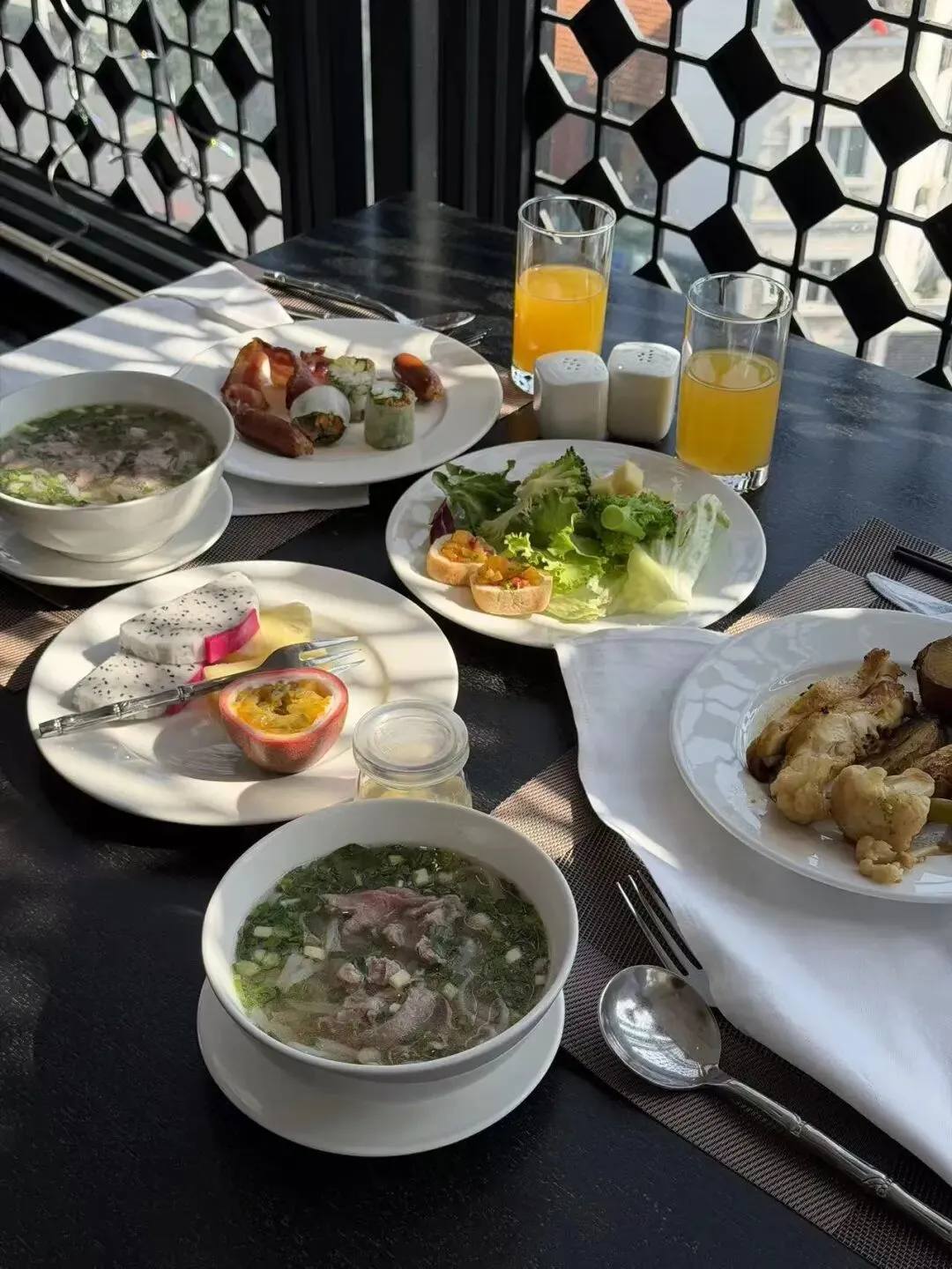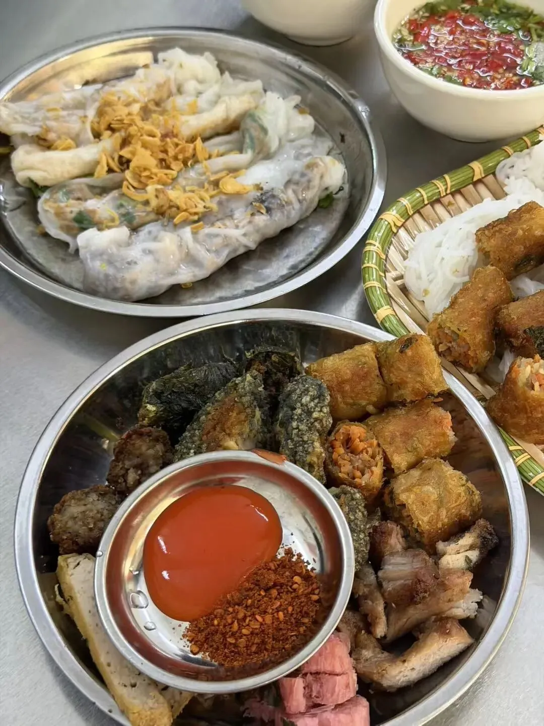 去映红餐厅吃小卷粉和特色拼盘,越式、中式两种蘸料都超绝。再到老味道吃涮蘸米线,就算不蘸料,汤底本身也足够香。