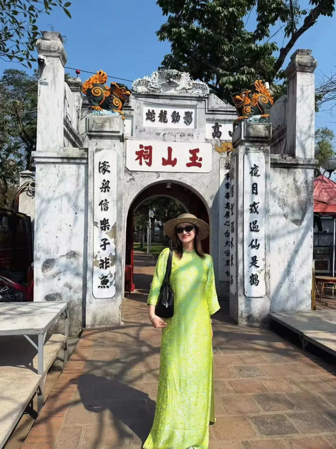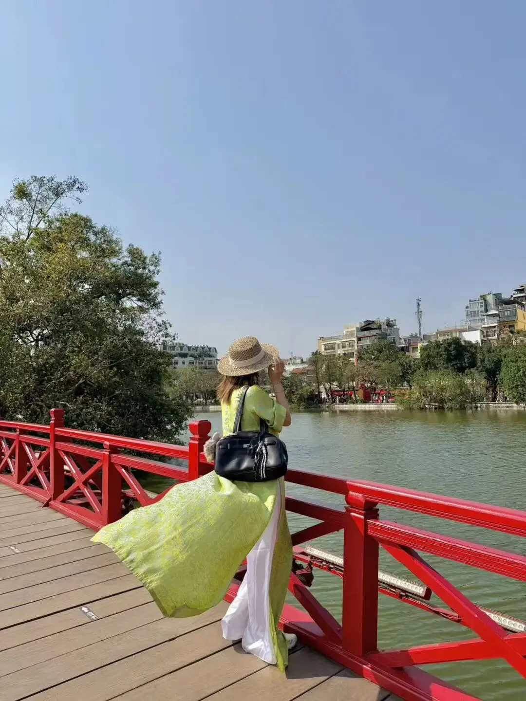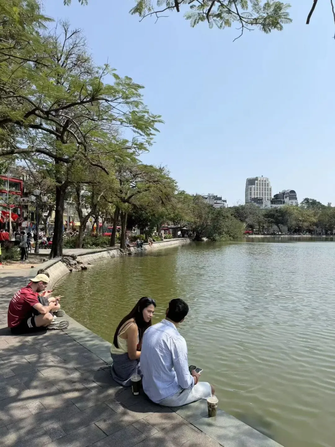 慢慢晃到还剑湖,这里的氛围像极了昆明翠湖,本地人、游客都在湖边晒太阳喝咖啡。可以租一身奥黛,登上玉山祠,在红瓦绿树里感受中式与越式建筑的碰撞。