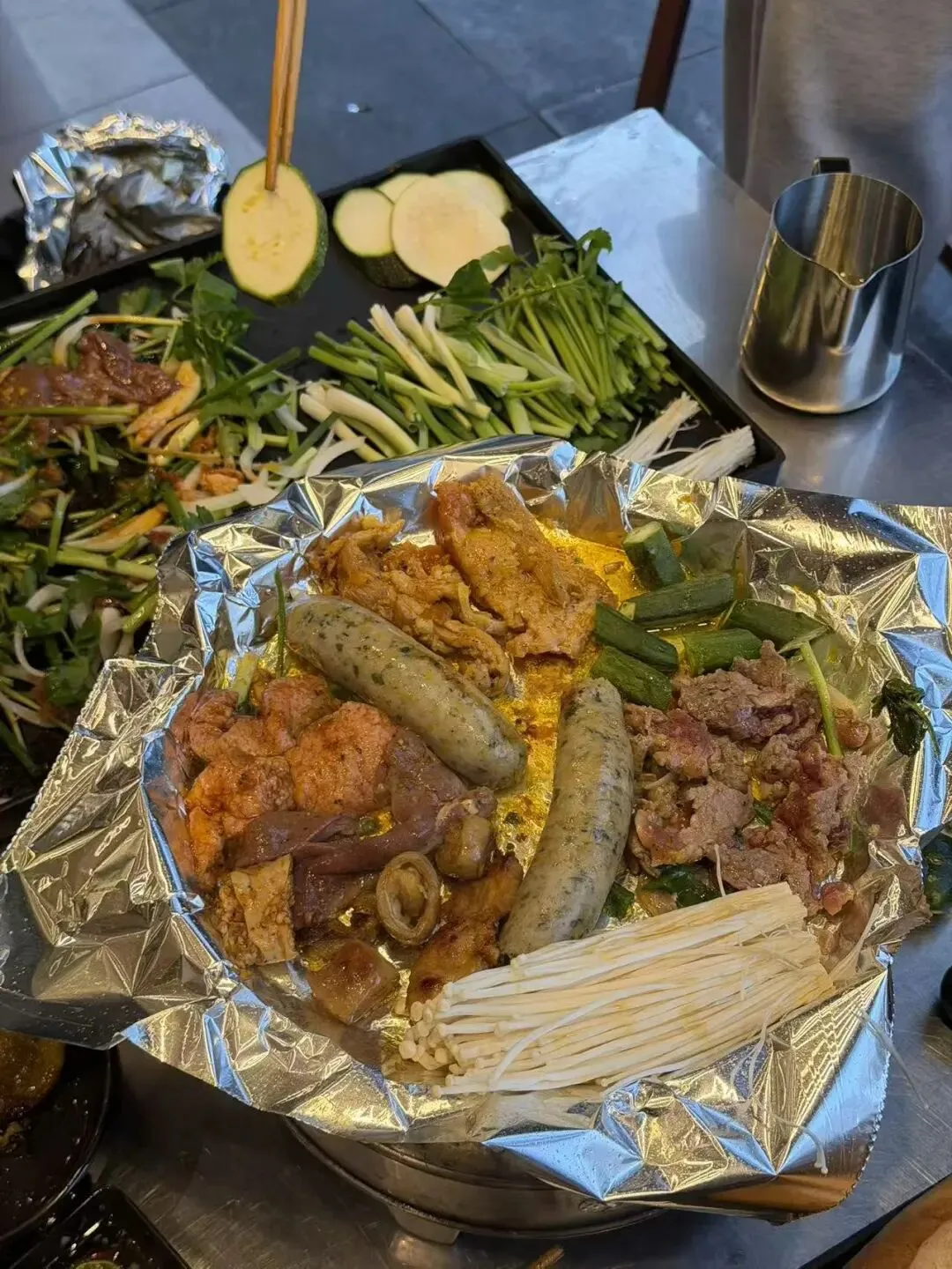 晚上去吃人气爆棚的黄油烤肉,建议用翻译软件自己点,更容易避开踩雷。傍晚去火车街,亲眼看着火车穿楼而过,震撼感拉满。