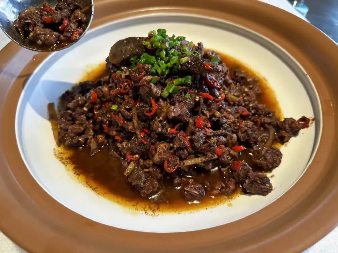 3. 攸县血鸭 这是一道极具地方特色的农家菜。与湘菜名菜"永州血鸭"不同,攸县血鸭更注重鸭肉本身的鲜嫩。将新鲜鸭血与鸭肉一同烹制,锁住水分,成品鸭肉滑嫩,酱汁浓郁,带着鸭血特有的醇厚风味,每一口都充满了乡野的质朴与鲜美。