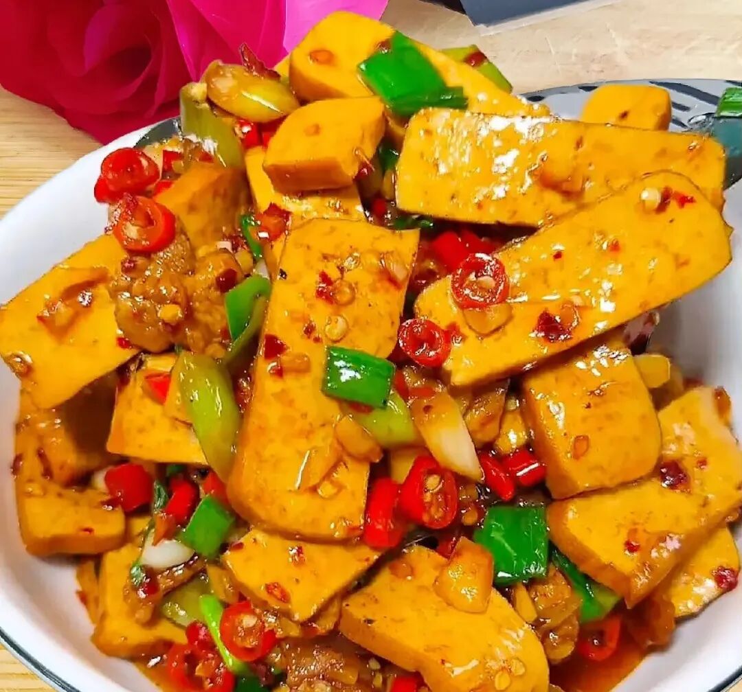 4. 攸县香干 攸县盛产大豆,这里的香干也因此闻名遐迩。选用当地优质黄豆,经过传统工艺制作,豆香浓郁,口感细腻且富有弹性。无论是切片油炸后作为零食,还是与韭菜、腊肉同炒,亦或是作为火锅配菜,攸县香干都能完美吸收其他食材的味道,成为餐桌上的"百搭王"。