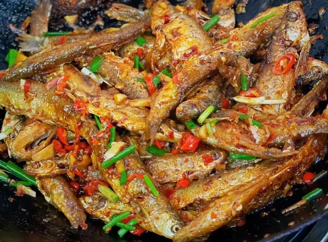6. 火焙鱼 这是湘江流域的传统美食。选用洞庭湖或湘江的小鱼,经过油煎、炭火焙干而成。火焙鱼不仅保留了鱼的鲜美,更增添了一股独特的烟熏香气。无论是直接油炸酥脆食用,还是与辣椒、豆豉同炒,都香辣开胃,是佐酒下饭的绝佳小菜。