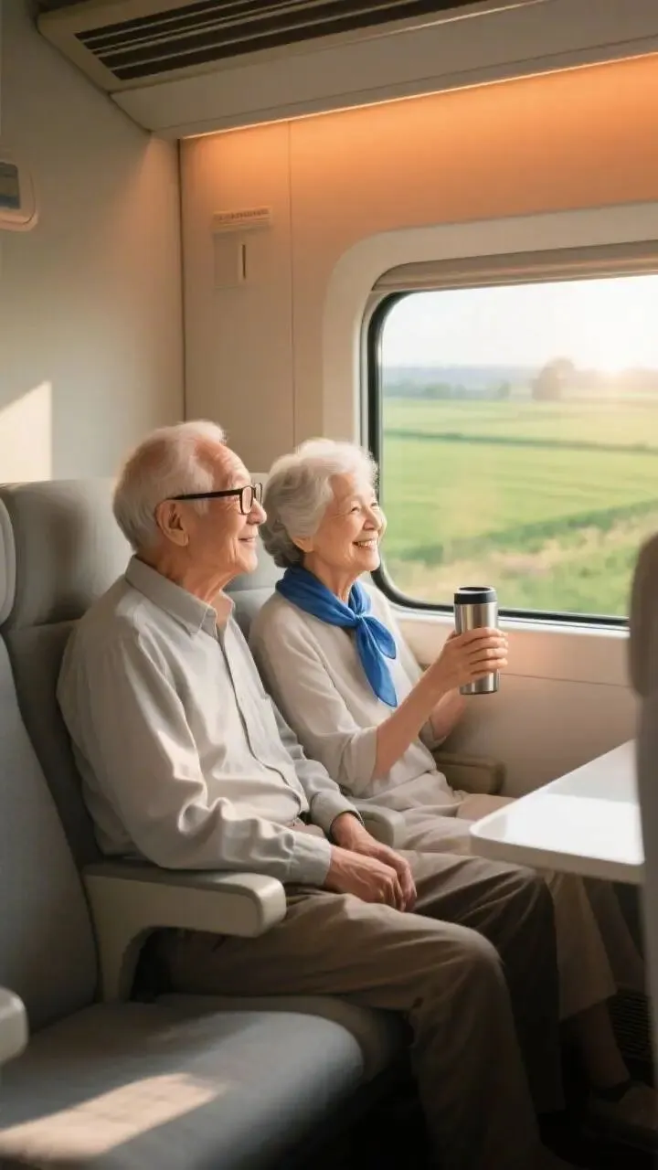 -老年旅行- Enjoy the journey 出行方式 对于60-75岁的老年人来说,选择合适的出行方式至关重要。推荐优先考虑高铁、飞机和邮轮等舒适的交通方式,避免长时间的长途汽车旅行。高铁平稳舒适,适合中短途旅行;飞机可以节省时间,减少旅途疲劳;邮轮则提供全方位的服务和休闲设施,非常适合慢节奏的旅行。 ✈️ 旅行注意事项 1. 提前预订座位,选择宽敞舒适的位置