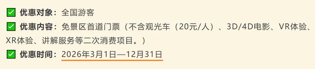 部分景区优惠措施