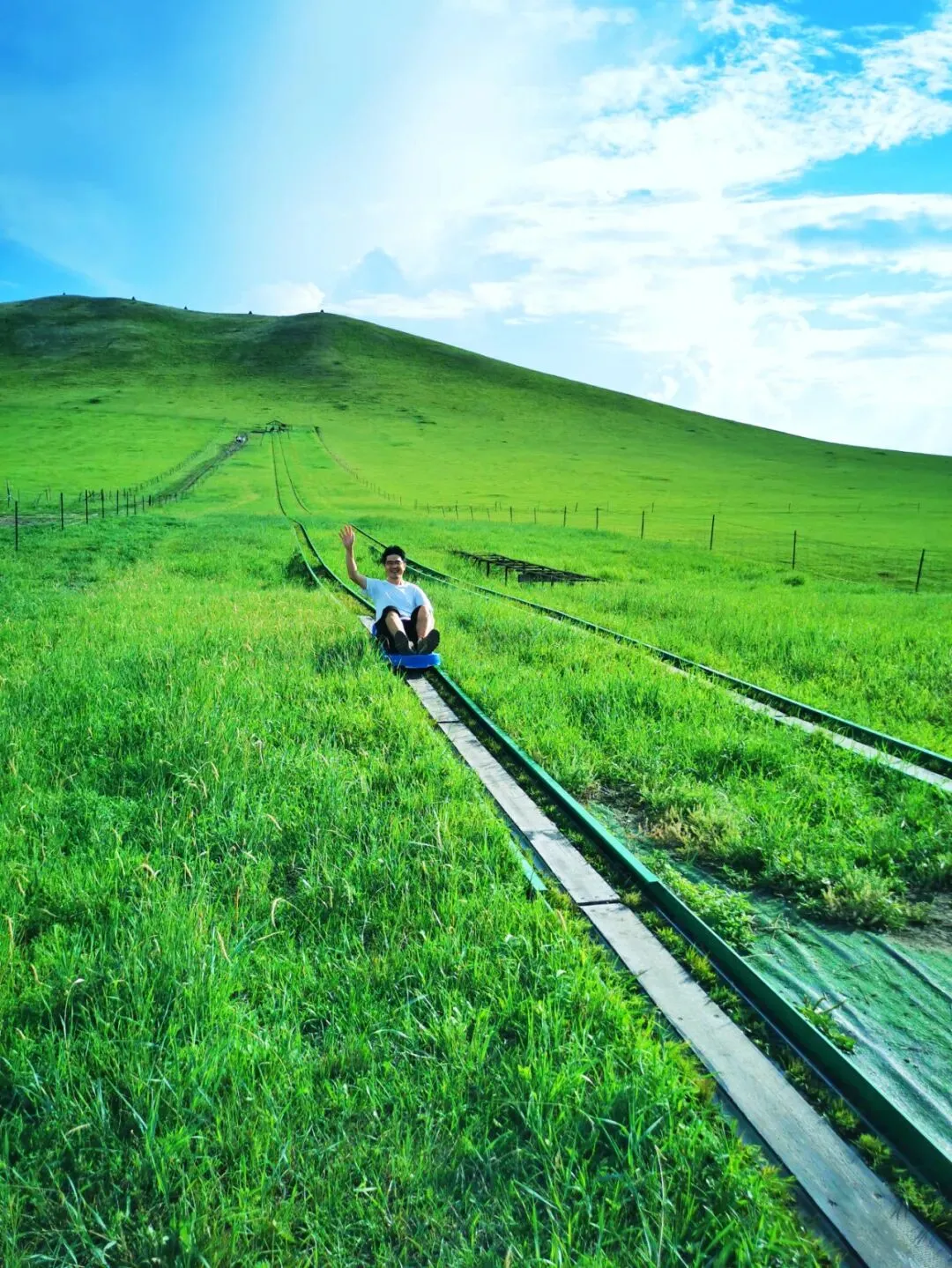 ☛体验惊险刺激的草原最长滑道的网红滑草!