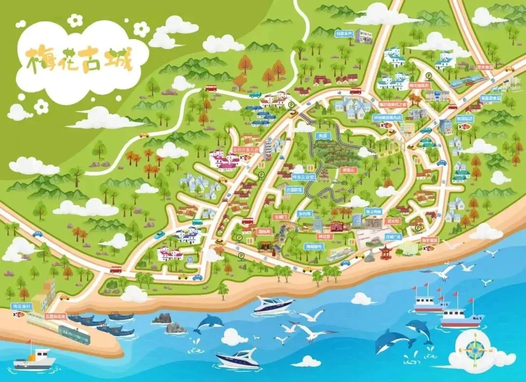 梅花古镇现存有明代抗倭古城墙遗址、林位宫、乡约所、蔡夫人庙、西施弄、将军山公园等人文胜景。可体验非遗工艺刺绣,到鱼丸一条街,品尝非遗美食鱼露、梅花鱼丸等。
