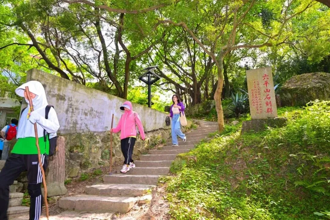 “一座六平山,半部长乐史”,石阶古道清幽。全程约4.7公里,累计爬升328米,新手友好环线,沿途有亭台休憩。