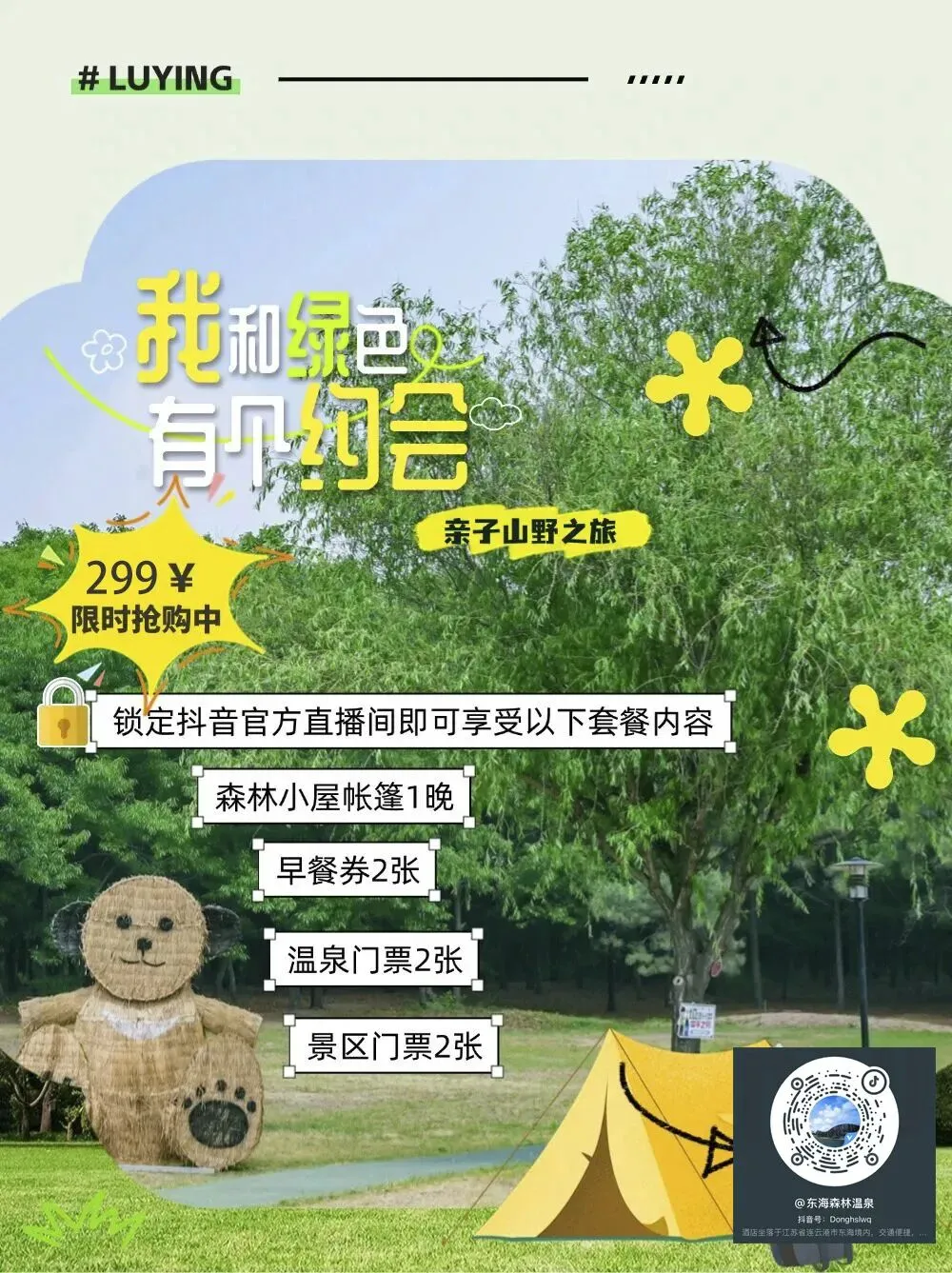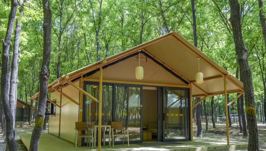 晚上住进帐篷小屋,第二天不用定刺耳的闹钟,清晨就被林间此起彼伏的清脆鸟鸣温柔叫醒,这是独属于森林温泉的春日唤醒仪式。推开帐篷小屋的木门,微凉的晨风裹着松针与野花的清甜扑面而来。