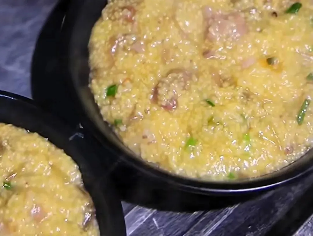 这可是三千年前的“暖男”担当!淇县的山羊养殖历史悠久,肉质紧实得能弹起来,膻味却小得几乎可以忽略不计。当地人把新鲜山羊肉和太行山小米请进土灶台,用大铁锅和木柴火慢慢熬制,直到羊肉的浓香和小米的谷香完美融合到一起,再加入萝卜干、豆角干、粉条这些配菜,一口下去,鲜香醇厚、暖意直冲天灵盖——古人抵御寒冬靠的可不就是这口!
