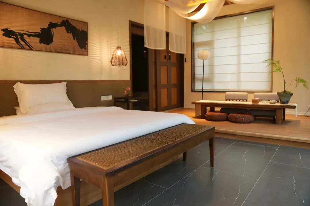 百年老房改造的徽派小院,每一处都藏着故事。75间客房,从翠微阁到特色老院,能装下150人的快乐。水上餐厅主打“大山里的食材,小时候的味道”,提供时令野菜和自助烧烤。静可品茶练瑜伽,动可K歌撸串,还能带娃体验非遗研学,全家出游的满分答案!