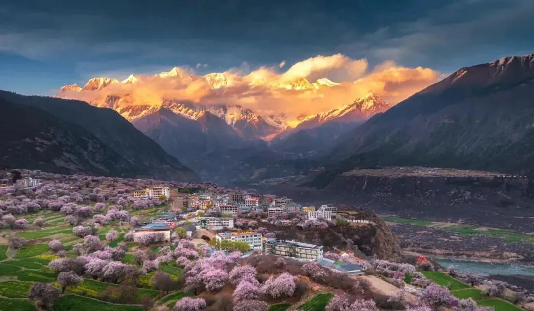 西藏林芝(3月下旬—4月中旬):雪山下的桃花秘境,嘎拉桃花村、波密桃花沟景色绝美,兼具壮阔与柔美。