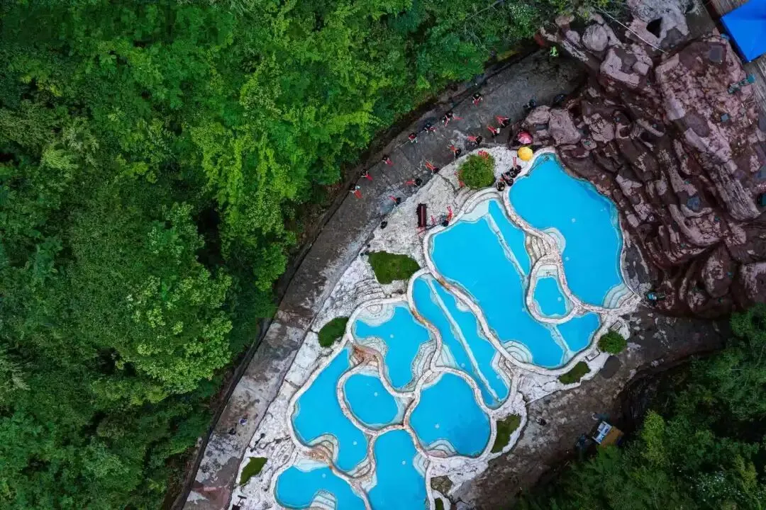 藏于峡谷之间的丹霞秘境,30 + 特色汤池错落分布,林下私汤静谧清幽,中药养生池温润滋补,亲子戏水池童趣满满,傍晚泡汤,看落日染红河谷,氛围感拉满。