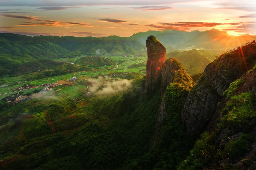 通天寨・丹霞奇观:国家 4A 级景区,“石怪、洞幽、泉美、佛盛” 的天然画廊,打卡 “仙人犁田” 龟裂石、生命之根与生命之门同山奇景,乘缆车俯瞰万亩田园与丹霞全貌,徒步山间,清风拂面,满眼绿意。