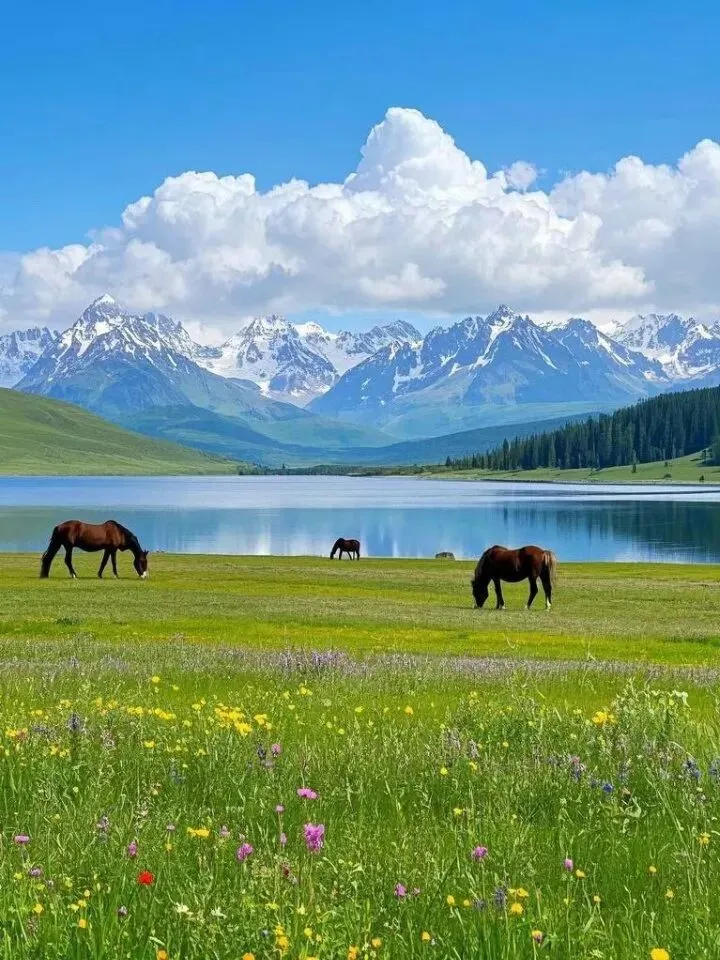 有着 “空中草原” 美誉的那拉提,四月正书写着独属于春日的浪漫。冰雪未完全褪去,野百合便顶着寒意破土而出,星星点点铺满草原。牛羊悠闲漫步,青草渐渐染绿山野,风掠过耳畔,都是温柔的气息。或是策马驰骋,或是静卧草地,都能接住这抹最干净的春风。
