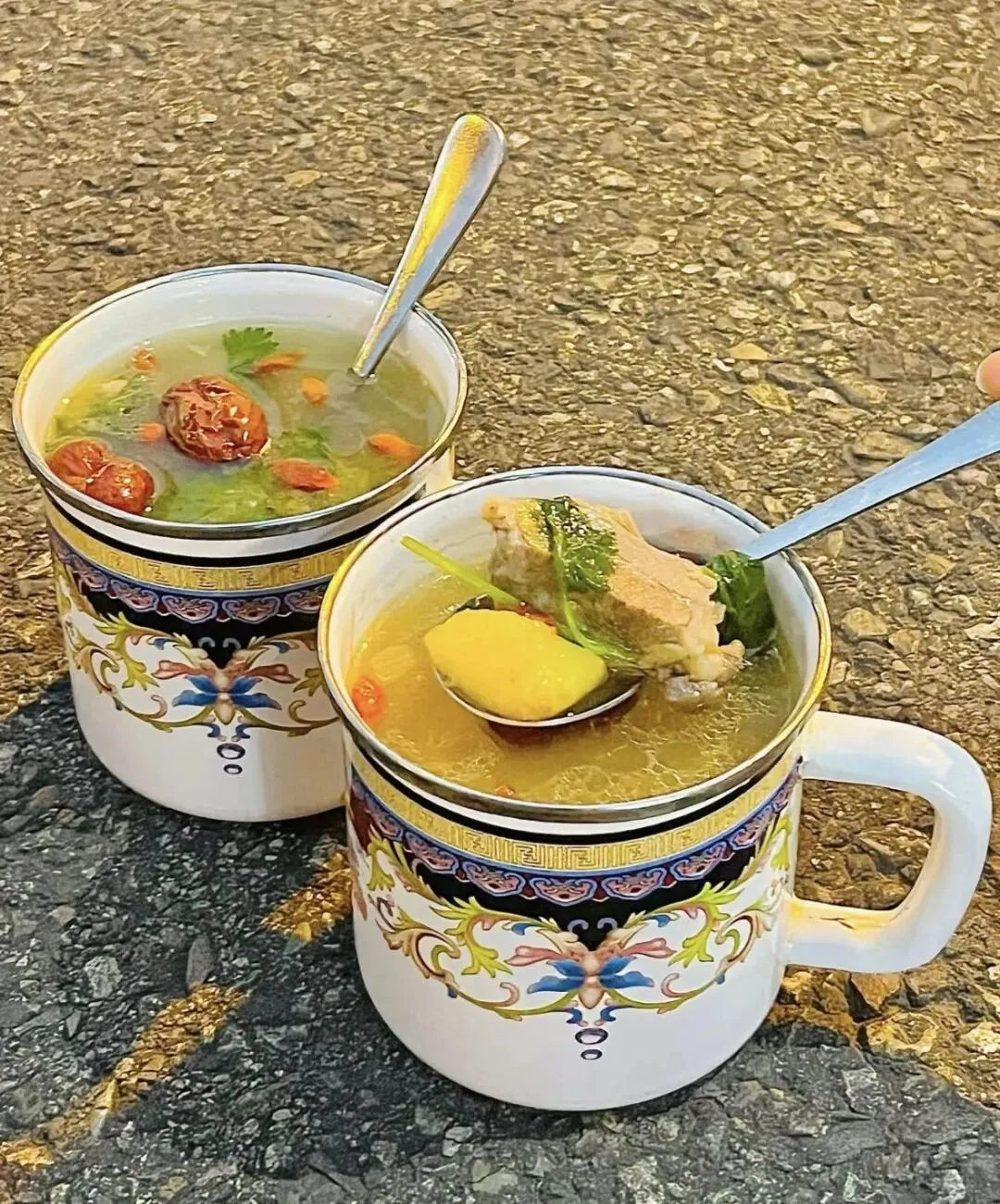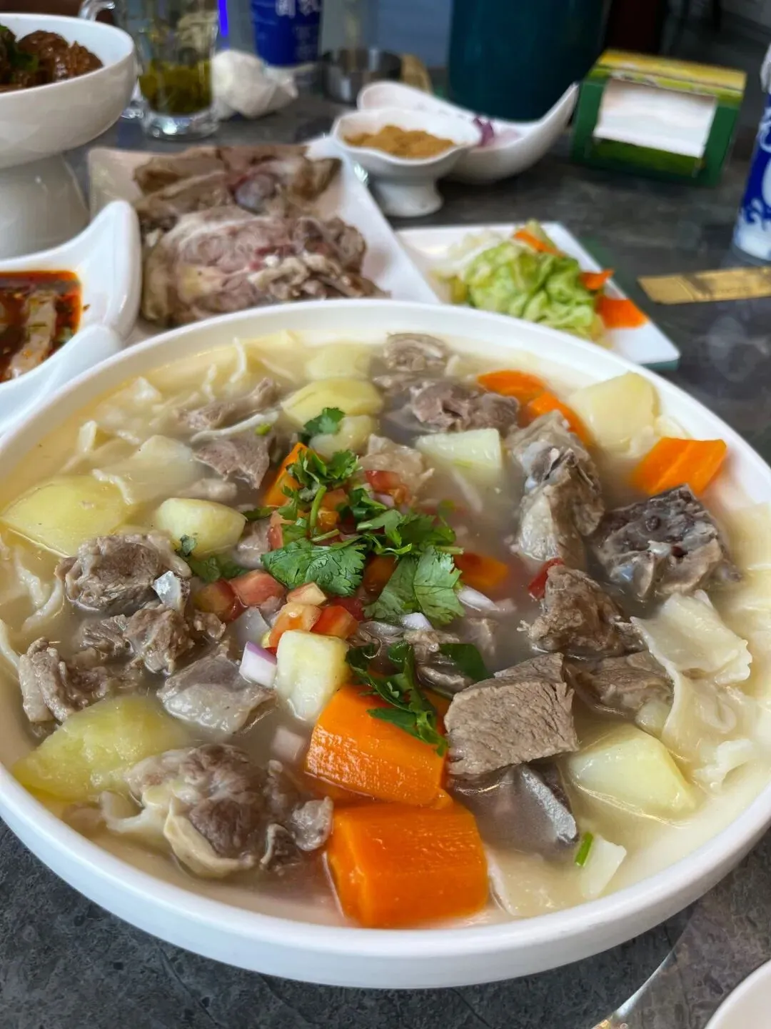 缸子肉:搪瓷缸慢炖羔羊肉,搭配黄萝卜、恰玛古,配馕吃原汁原味。