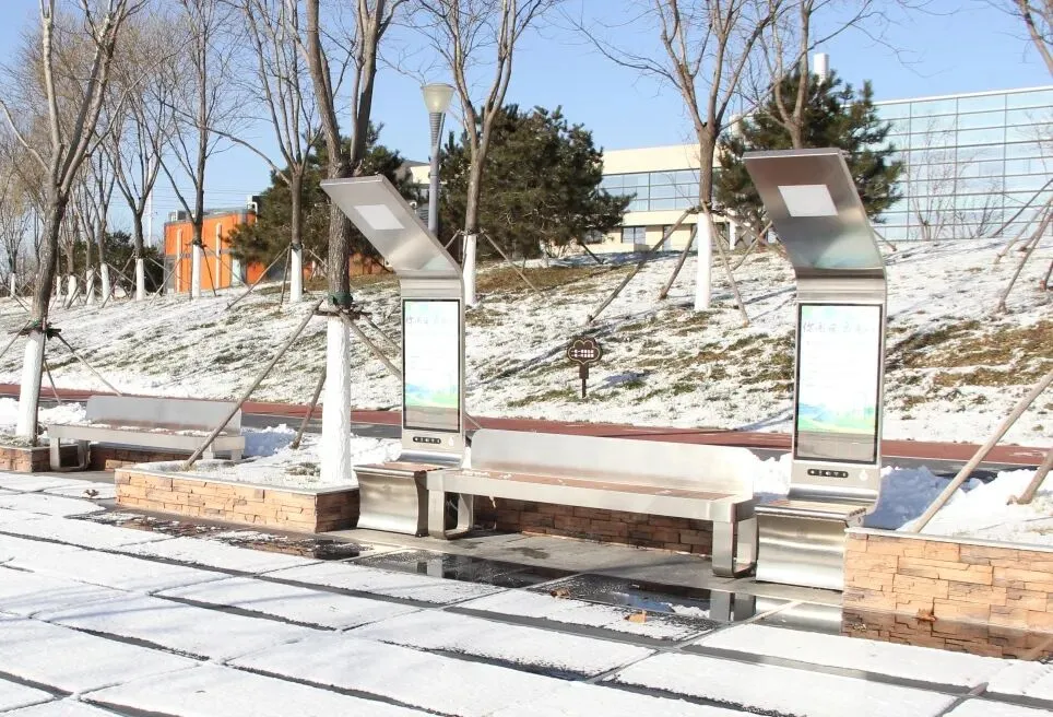 令人惊喜的是,这里还隐藏着一个“绿色智慧能源广场”。游客们可以在光伏座椅的接口上为手机充电,连上智慧路灯的无线热点畅享网络资讯,也可以通过手机蓝牙连接广场音响设备播放音乐等。