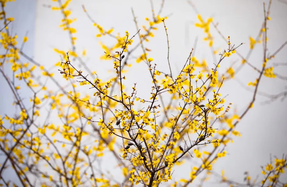 迎春花金英垂条,先春绽放,金枝缀露,翠萼含芳,于堤岸、园林、城隅间轻垂柔条,一抹明黄,叩响春日之门的第一缕明媚。