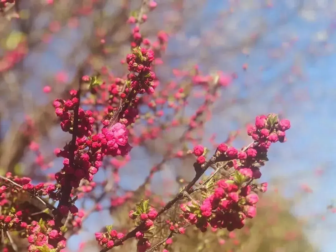 嫣红缀枝,玉蕊含芳,皎皎其华,嫣然照水,粉艳的花朵缀满枝头,在阳光下莹莹动人,勾勒出春日最动人的烂漫风情。