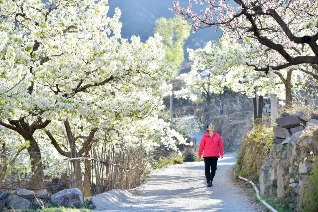 梨花素雪盈枝,冰清玉润,像落了一层清雪,带着淡淡的清香,让果园与村野都显得干净又温柔,铺展成春日最纯净的诗意画卷。