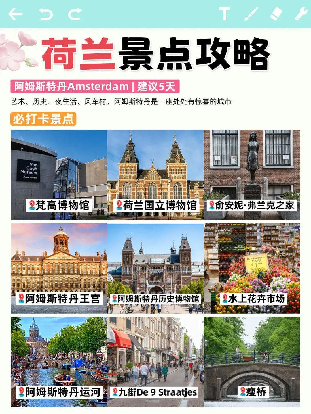 这座被风车🪁、郁金香🌷和运河🚤包裹的低地国家,浪漫又治愈,节奏慢悠悠,路线规划好一点都不累✨