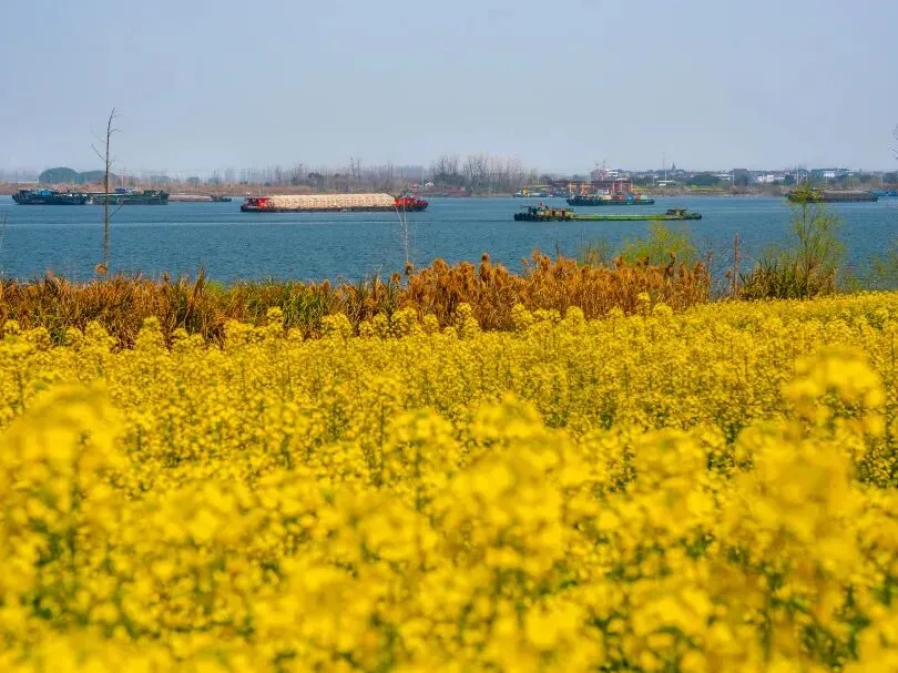 春风一吹,江畔油菜花鎏金漫野