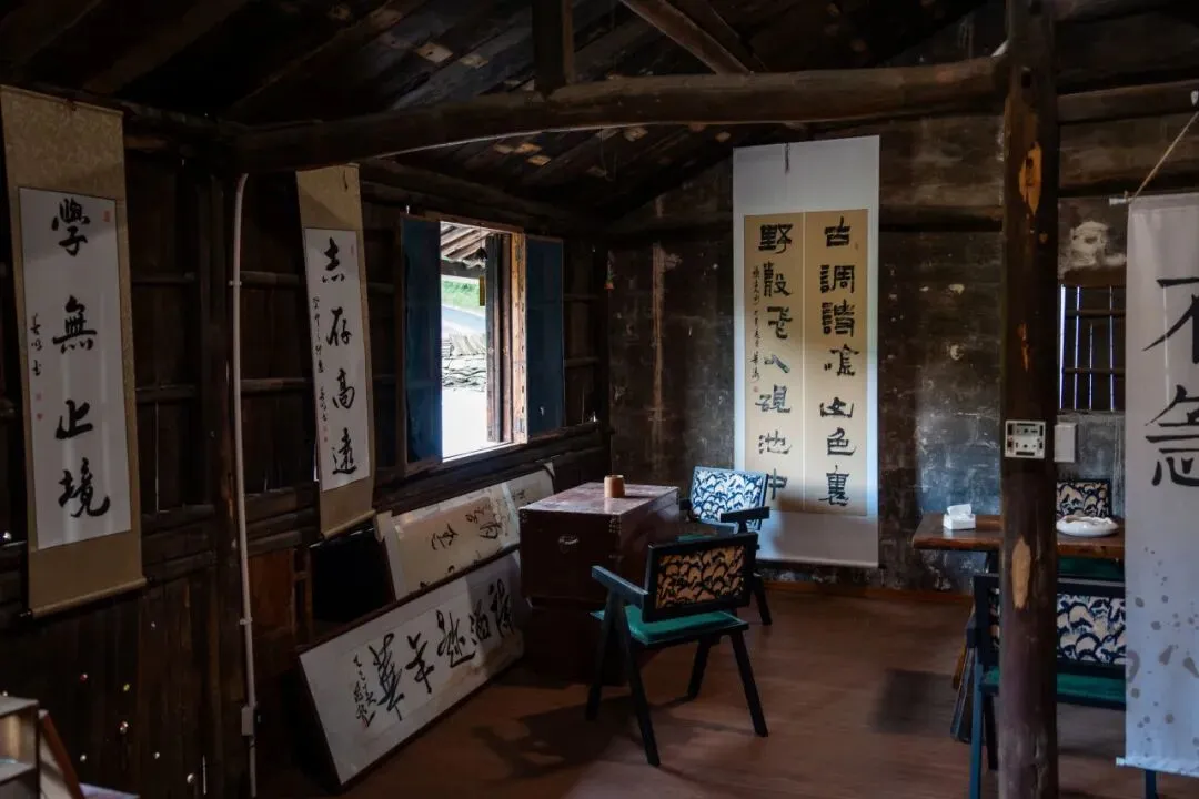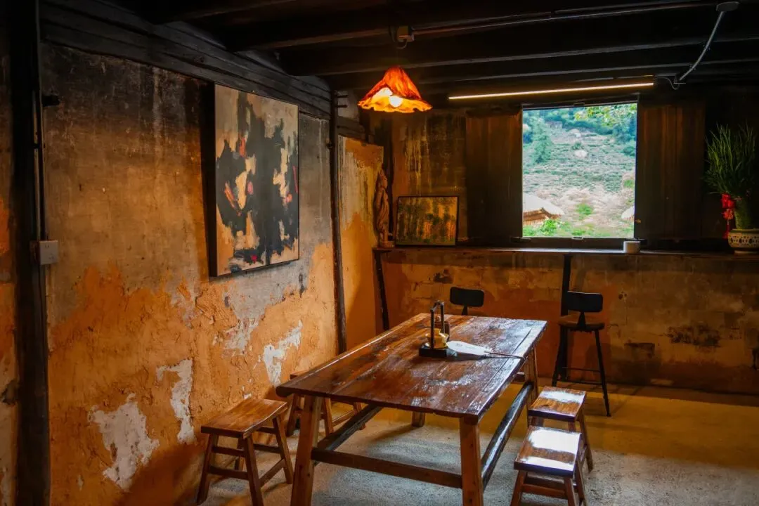 这座渔山的首家山间小院,藏在墅溪至林峰的盘山公路弯角,由废弃民房改造而成,夯土墙、木衍构架保留着老房的传统肌理。