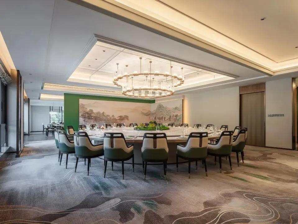庄园采用新中式庭院设计,装修融入富春江水、本地檫树花文化元素,将自然之美与人文之韵完美融合。