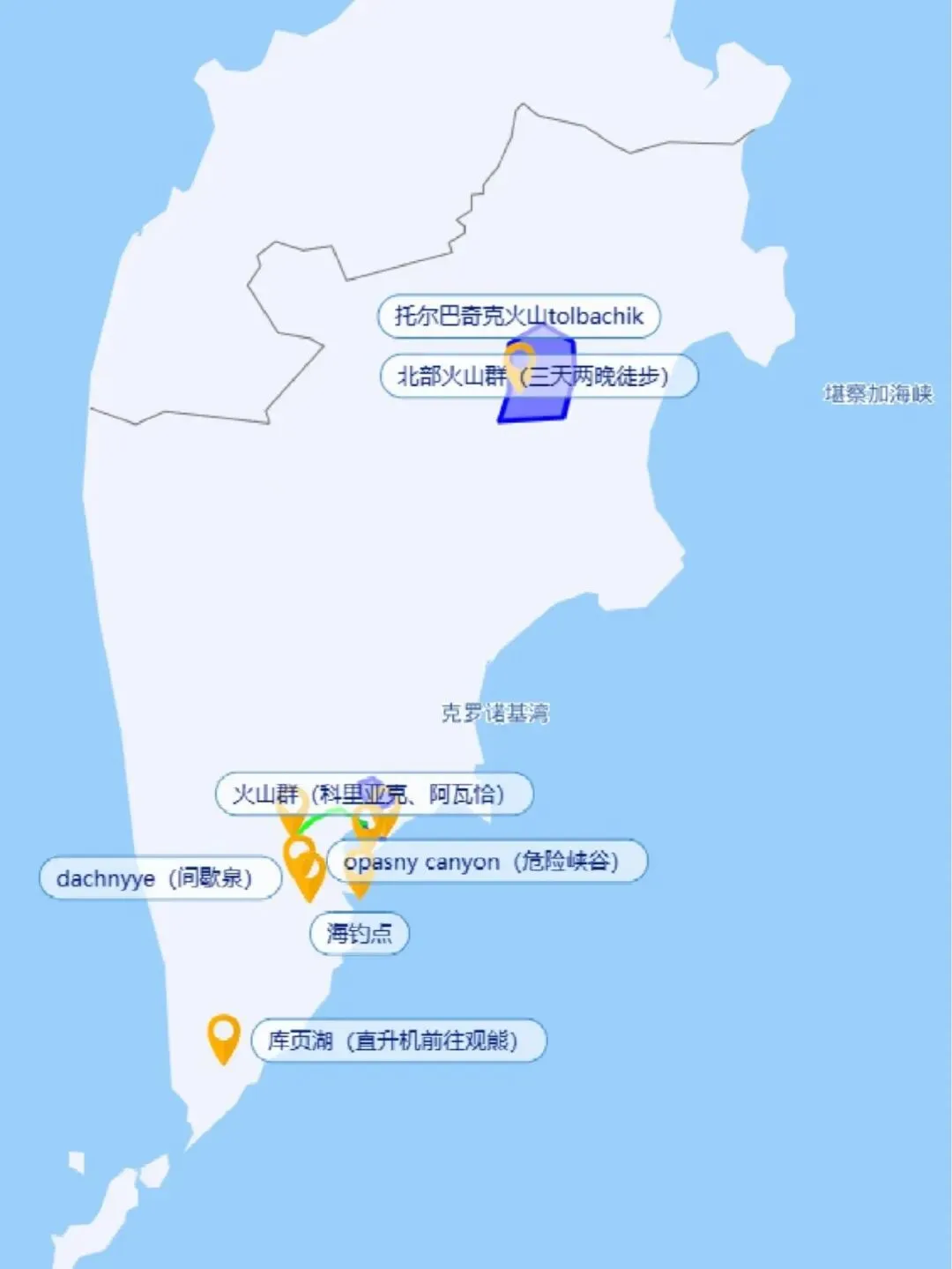 图片4:噶列雷火山-蓝湖(徒步等级中等) 堪察加在哪里? 位于俄罗斯远东地区,一个充满神秘与原始魅力的地方。这里被誉为地球上最“野”的孤岛之一,有29座活火山,极具代表性的火山地貌、天然的温泉、自然文化遗产的间歇泉以及未被破坏的自然风光。