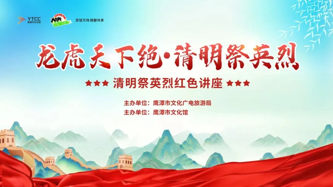 ✨红色讲坛开讲,聆听鹰城红韵:馆内重磅推出 “龙虎天下绝・清明祭英烈” 红色文化讲坛 ,3月28日(周六)15:00于馆内小剧场开讲,特邀革命烈士后代、本土文化学者夏维纪先生主讲《传承红色文化,讲好鹰潭的红色故事》,以亲历者视角重温鹰潭峥嵘岁月,公益开放免票参与。