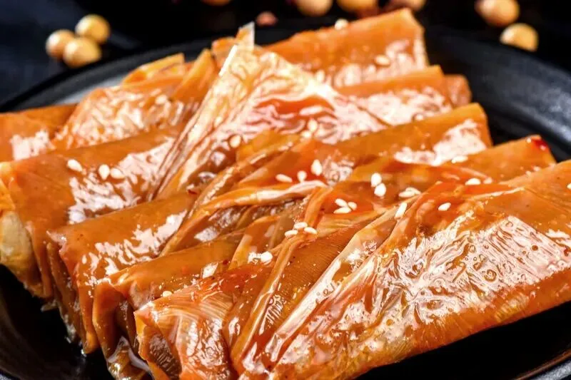 3. 罗江豆鸡:豆皮制作,素中珍馐 。