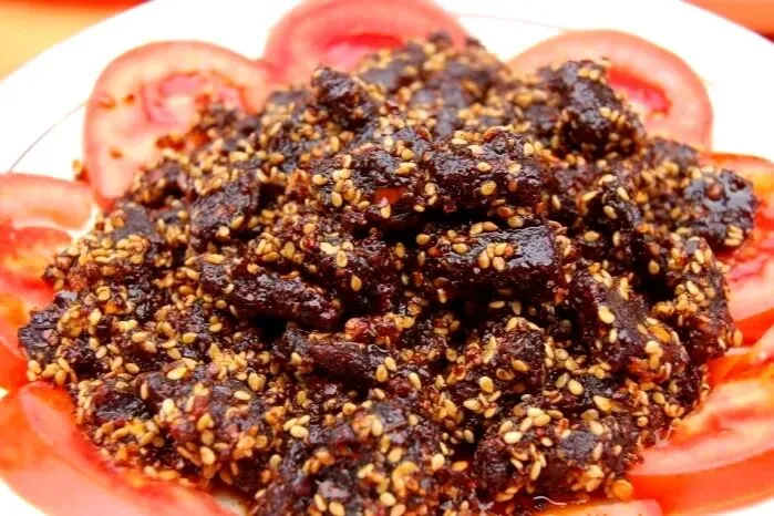 5. 孝泉果汁牛肉:回民风味,香甜化渣 。