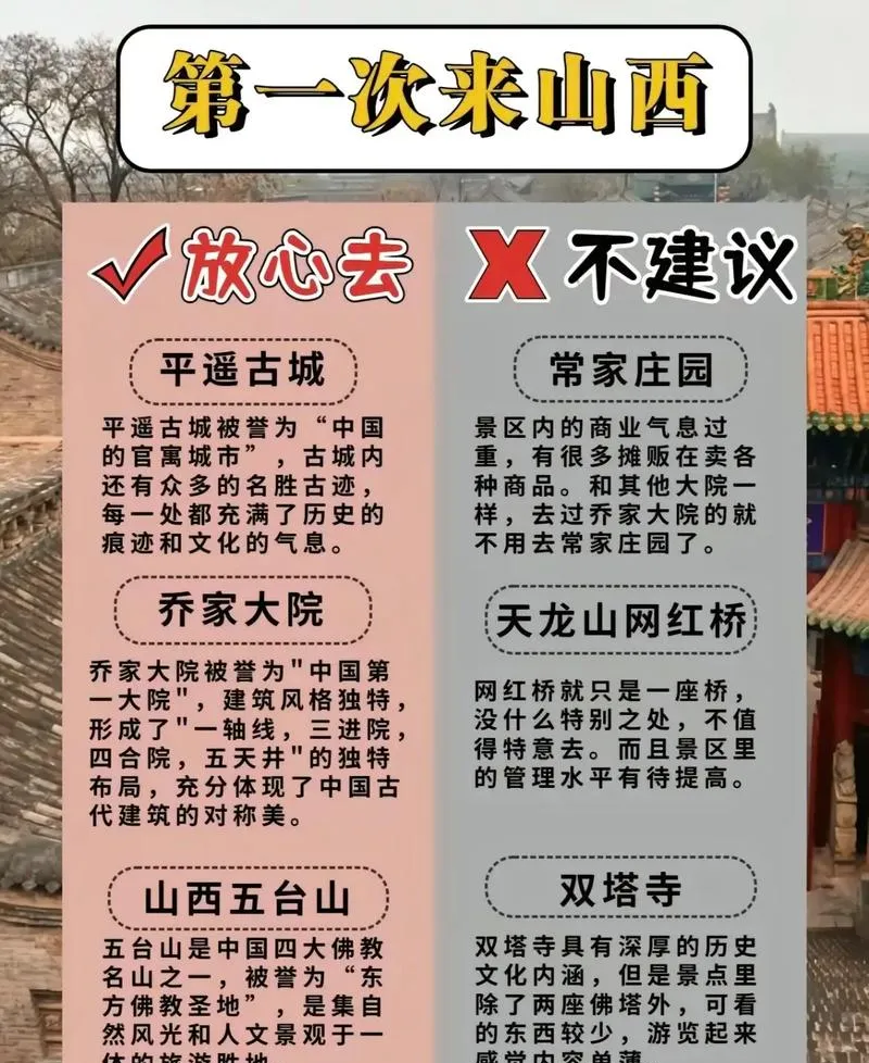 有人会问要不要去应县木塔,这个看个人,应县木塔确实是国宝,但离大同有一段距离,来回要大半天,如果你对古建筑特别感兴趣,那值得去,如果只是想看看热闹,那可以跳过,因为木塔现在不让上去,只能在下面看,这个体验对普通游客来说性价比不高。