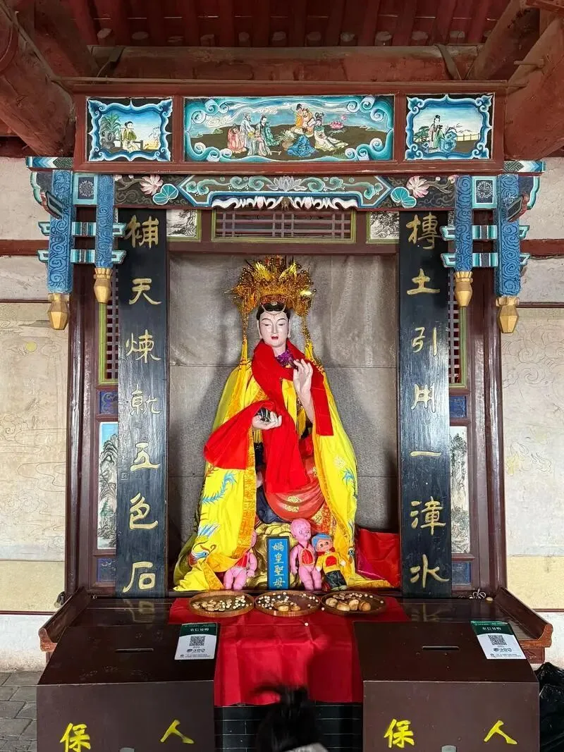 核心民俗包括“坐夜”与“拴娃娃”:信众在广生宫彻夜陪伴“奶奶”(女娲),祈福许愿;求子者用红线拴住泥娃娃带走,若遂愿,来年需以双倍泥娃娃“还愿”。整个中皇山香火缭绕,戏台高唱,形成持续半月的“华北第一庙会”,生动展现着活态传承的女娲信仰。