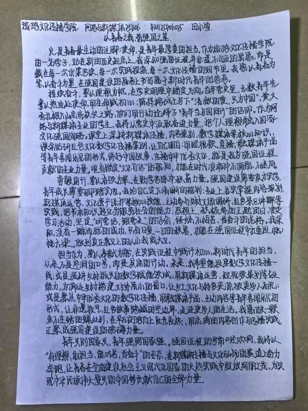 旅游文化传播学院举办“我的强国征程规划”主题征文比赛
