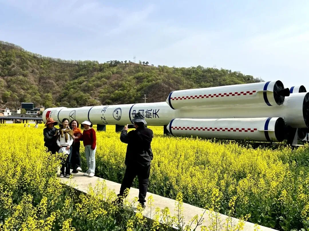 冕宁县泽远镇红专村的油菜花田独具格调,航天元素与田园风光巧妙相融,温柔花海与航天豪迈撞个满怀。