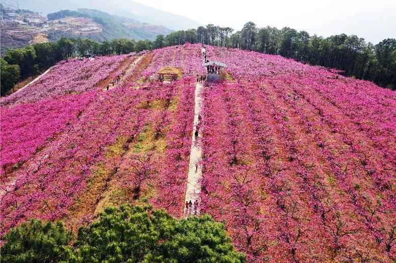 宁南县桃花村,3000余亩桃花灼灼缀岭,粉霞漫染山野。