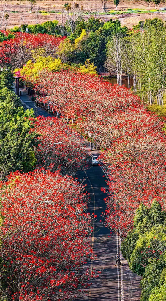邛海刺桐花火红似焰,将湿地公园装扮得灵动又鲜活。