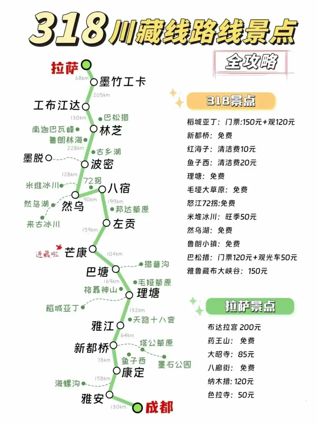 🌟 自驾重点:318核心路线规划(3种版本,适配不同自驾节奏)