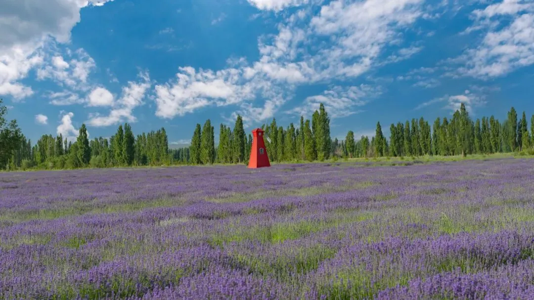 “塞外江南”,6月霍城薰衣草、7-8月草原雪山同框;赛里木湖、那拉提草原、独库公路自驾;昼夜温差大(白天25℃,夜间12℃);建议备冲锋衣。