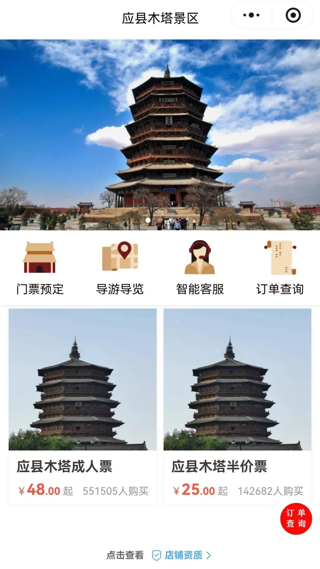 应县木塔:小程序【应县木塔】,成人票 48元