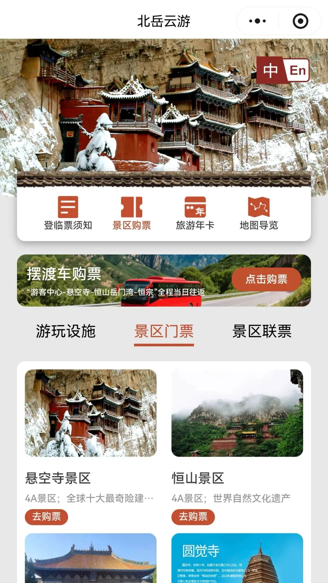 恒山+悬空寺:小程序【北岳云游】